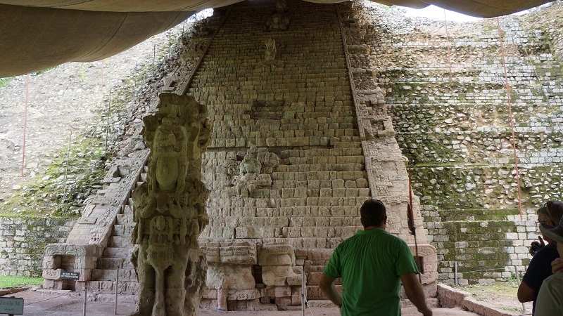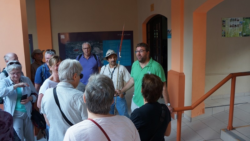 Nach einem vorzüglichen Frühstück fahren wir um acht zum Maya-Bezirk in Copán. René führt uns zusammen mit einem einheimischen Guide durch die Ruinen. Er weiss sehr viel zu erzählen. Es ist wirklich erstaunlich, was die Mayas hier hinterlassen haben. Mit einigen Reiseteilnehmern zusammen wagen wir noch einen Blick in die Tunnels, die von den ausgrabenden Archäologen angeregt und unter den Ruinen gegraben wurden. So können wir hier die Bauten verschiedener aufeinanderfolgender Herrscher besichtigen, denn jeder dieser Maya-Könige liess über den Gebäuden seiner Vorfahren eigene Bauten nach seinem Gusto erstellen, ohne allerdings die bestehenden abzureissen.