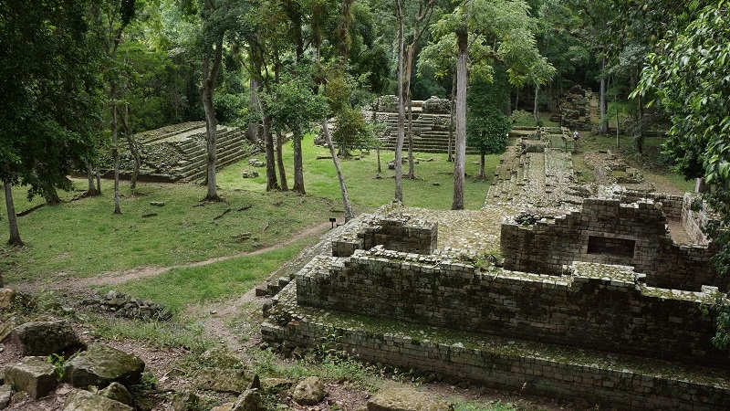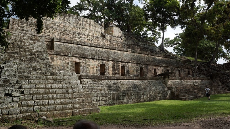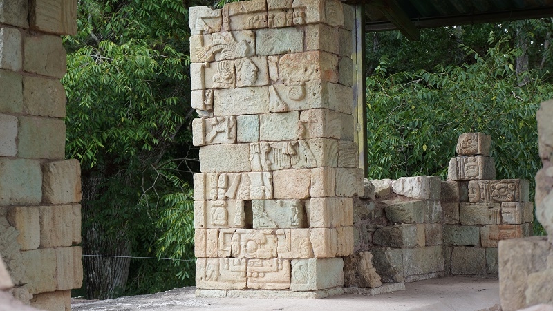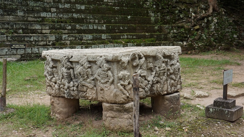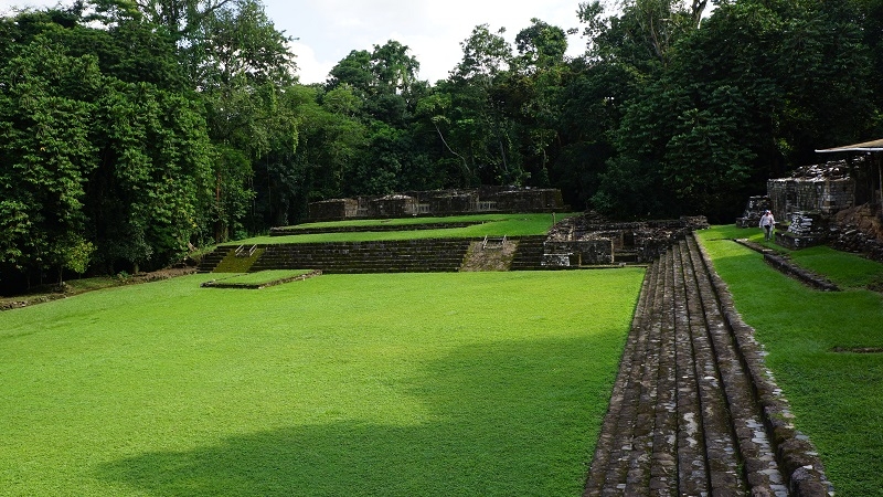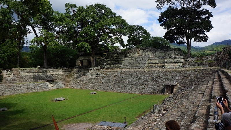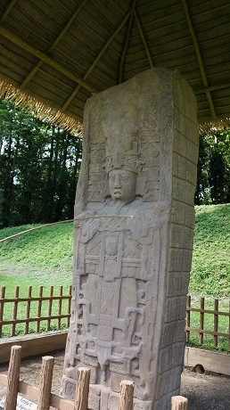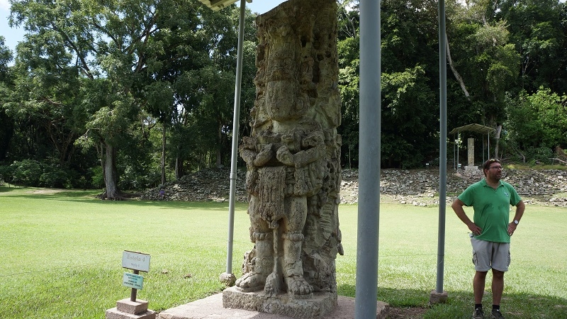 Nach kurzer Weiterfahrt kommen wir zum Eintrittsportal der archäologischen Stätte. Aber hier in dieser parkähnlichen Anlage geniessen wir zuerst unser Picknick. Dann führt uns René zu den einzelnen Sehenswürdigkeiten und erklärt uns in gewohnt sachkundiger Art die Zusammenhänge und die historische Abfolge. Interessant ist insbesondere die Verknüpfung mit der Fundstelle in Copán. Es ist heiss, die Sonne brennt auf unsere Köpfe, so dass nach dieser anstrenenden Führung ein kühles Getränk wohltut.