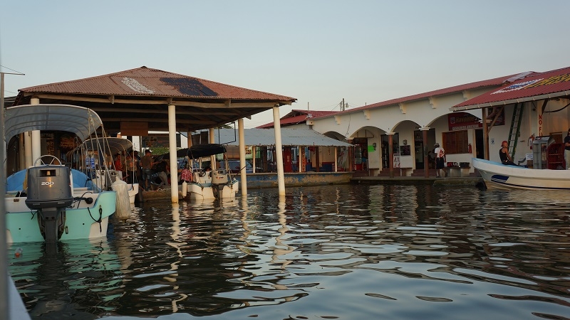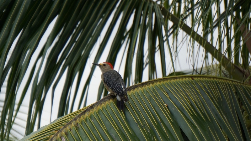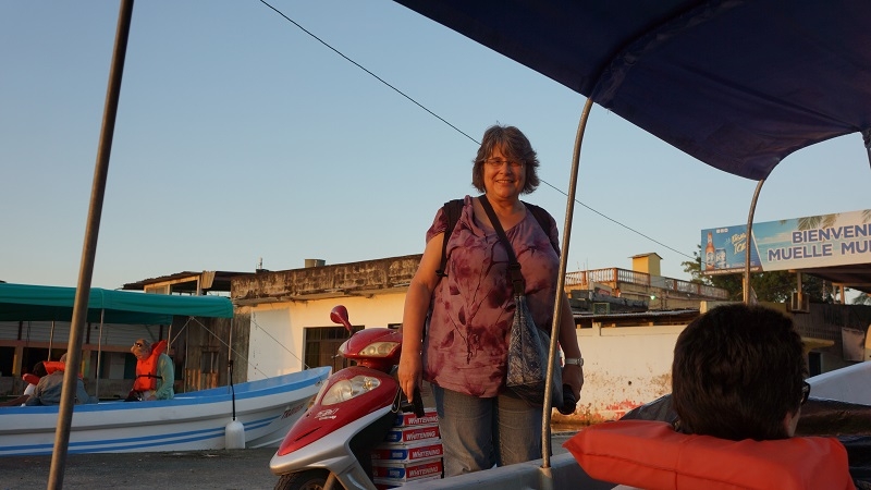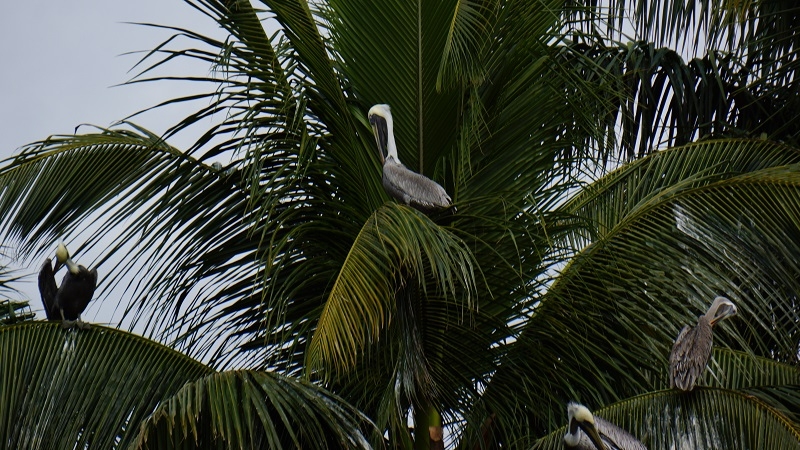 Kurz nach fünf Uhr bin ich wach. Draussen ist bereits Betrieb. Man hört die Motoren einiger Boote, Musik von einem Radio und verschiedene andere Tätigkeiten. Schon bald stimmen auch verschiedene Vogelarten ein. Da drängt sich auf, den Feldstecher zu aktivieren. Auf der Zimmerterrasse können wir wunderbar das Getue rund eines Dutzends Rabengeier auf einer nahen Palme beobachten. Unmittelbar vor uns, auf einer anderen Palme, singen und karisieren bis zu vier kleinere Vögel mit gelber Brust, einem schwarzen Augenstreif und darüber einem weissen Streifen. Am Wasser unten sind Braunpelikane, Kormorane und Silberreiher zu beobachten. Und plötzlich taucht neben anderen unbestimmten Vögeln ein Yucatánspecht auf. So vergeht die Zeit schnell bis zur Morgentoilette und zum Frühstück.