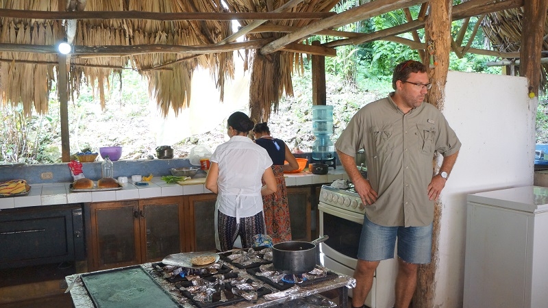 Nach unserer Rückkehr zur Hütte, müssen wir uns mit Zusammenräumen und Packen beeilen, denn das Morgenessen steht auf dem Programm: Omelette mit Bohnenmus, Tortillas, gebeites Brot, Butter und Hibiskuskonfi, Kaffee.