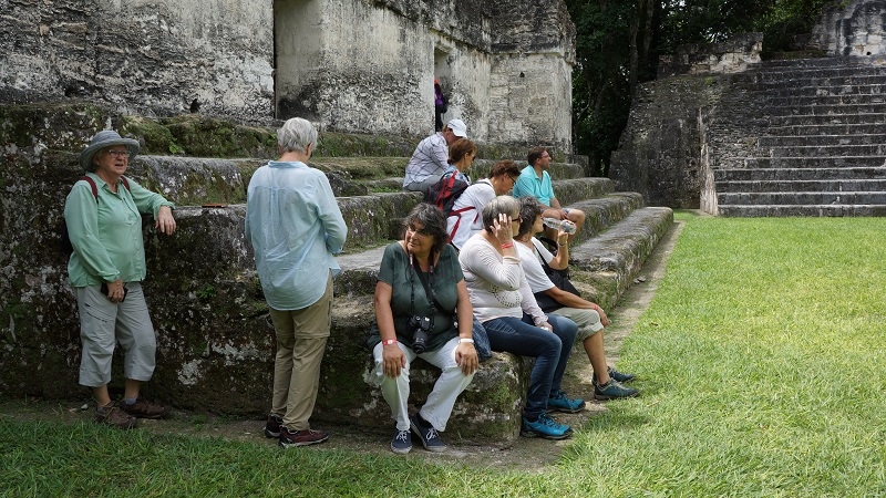 Der heutige Tag ist zur Hauptsache der Besichtigung von Tikal gewidmet. Nach dem Packen unserer Koffer und dem Frühstück starten wir mit dem Rundgang durch das archäologische Gelände um halb neun Uhr zusammen mit René und einem lokalen Guide. René erklärt uns die geschichtlichen Zusammenhänge, der Guide macht uns immer wieder auf besondere Pflanzen und Tiere aufmerksam. Es tönt einfach fantastisch, wenn wir durch diese von den Maya hinterlassenen Monumente gehen, mit welchen Mitteln und mit welchem Aufwand sie erstellt wurden, welche Stellung die Mayafürsten einnahmen und wie wenig Wissen über das Leben in den politischen Gebilden vorhanden ist. Das Denken und die Lebensweise dieser Menschen ist uns sehr fremd.
