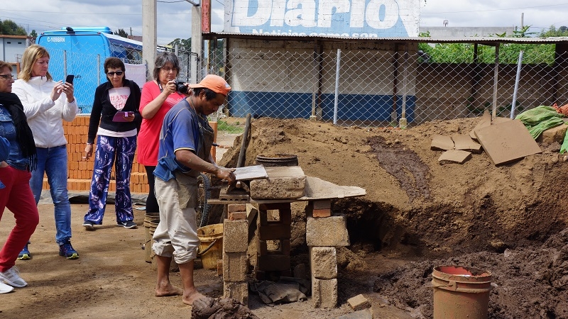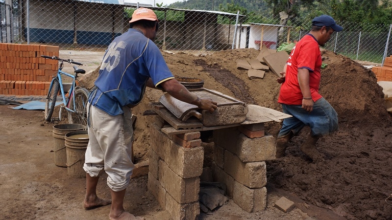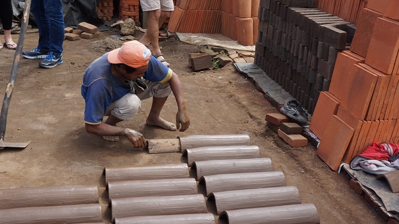 Auf der Weiterfahrt halten wir noch bei einer «Kleinziegelei» an. Hier werden einfache Bausteine und Ziegel in Schwerstarbeit aus Lehm, Sand und Wasser von Hand hergestellt und auch gebrannt. Zwei Buben sind bei diesem Prozess neben ein paar Männern beteiligt. Zwei dieser Männer stampfen mit den nackten Füssen, fast bis zu den Knien in der Masse steckend. René nennt uns die Preise für diese Backsteine und Ziegel. Solche Preise sind in unseren Augen das Betteln versäumt.