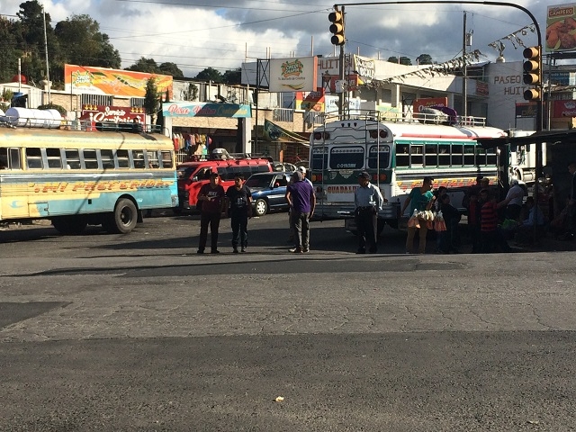 René teilt uns unterwegs mit, dass wir einen Umweg fahren müssen, weil die kürzeste Verbindung nach Antigua gesperrt sei. So fahren wir ab Esquintla auf der Autobahn weiter Richtung Guatemala Stadt und nehmen dann die Strasse nach Amatitlán über den Berg nach San Lucas. Und da kommen wir langsamer voran, weil sich der Verkehr immer wieder staut.