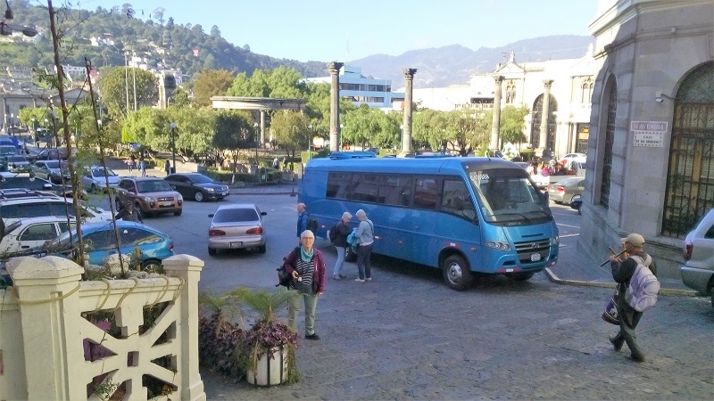 Um zirka viertel vor eins fahren wir mit dem Bus nach Guatemala Stadt. Während der Fahrt lässt René die ganze Reise Revue passieren. Das ist zugleich der Abschied von uns, denn er wird erst später zurückfliegen. Sepp dankt im Namen der ganzen Gruppe Beatrice für ihren Anstoss, diese Guatemalareise zu organisieren, für die Werbung dafür und für ihren grossen Beitrag dazu, was mit grossem Beifall der Teilnehmer bekräftigt wird.