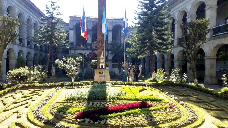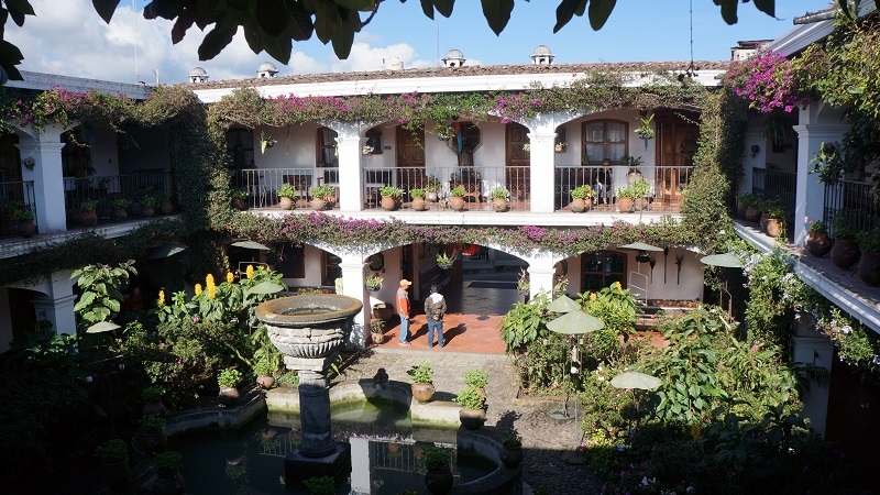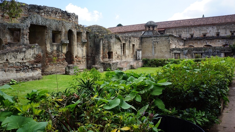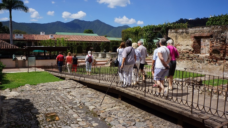 Mittags erreichen wir Antigua und beginnen vor dem Hotelbezug die Stadtbesichtigung. Unser Chauffeur lässt uns beim ehemaligen Dominikanerkloster aussteigen. Heute ist hier ein sehr gutes Hotel integriert. Mehrere Museen, Ruinen und Gärten geben einen Einblick in die Geschichte der Stadt, die Mitte des 16. Jahrhunderts gegründet wurde. Eigentlich sollte Antigua, damals als „Muy Noble y Muy Leal Ciudad de Santiago de Los Caballeros de Goathemala“ benannt, Hauptstadt von ganz Zentralamerika werden.