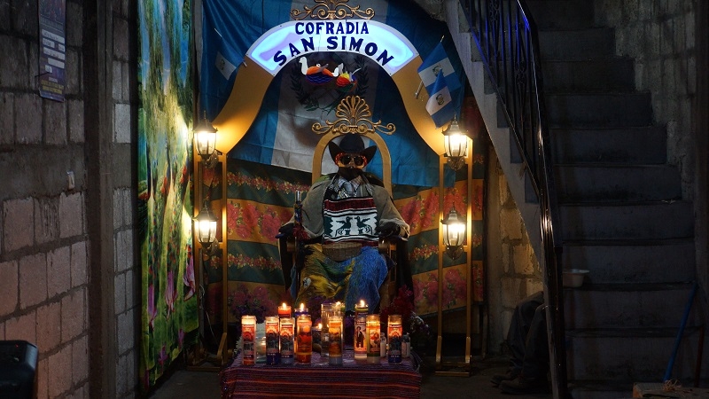 Der Markt von Zunil bietet ebenfalls ein spezielles Bild. Neben den üblichen Artikeln wird hier aber von einer San Simon-Gemeinschaft ein «Erlösungsritual» angeboten. Wir können ein Ticket und zudem für zehn Quetzales eine Fotografiererlaubnis kaufen. Was hier geboten wird, passt mir gar nicht, und ich verlasse den Ort umgehend mit dem schlechten Gefühl, dass hier abergläubische Menschen über den Tisch gezogen werden.