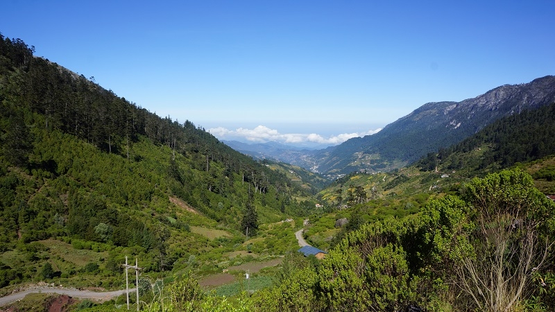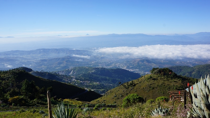 Die Fahrt führt über die Kette der Cuchumantanes. Die Strasse ist steil und kurvenreich. Auf rund 3100 m ü.M. machen wir beim Aussichtspunkt Juan Diéguez Olaverri Halt. Die Aussicht ist fantastisch. Man sieht unheimlich weit. René nennt einige Namen, aber diese zu behalten, ist ein anderes Thema. Da sind Gebirge, Ebenen, Vulkane und Städte erkennbar, wirklich beeindruckend.