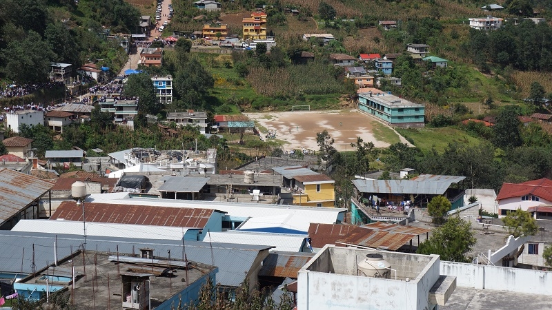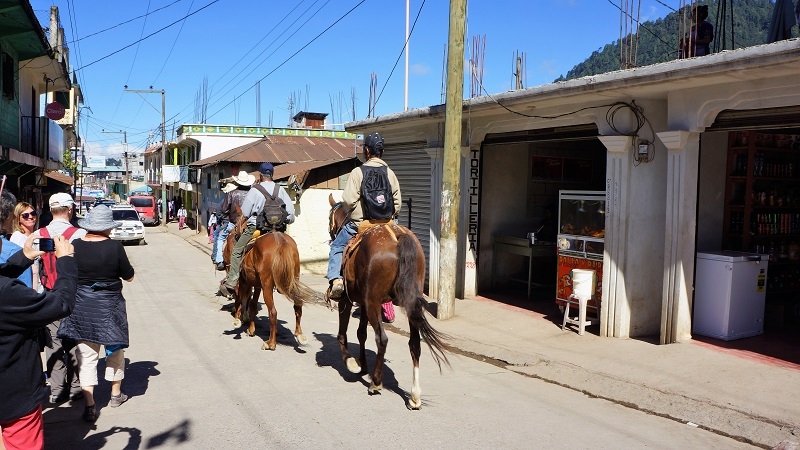 Die Fahrt führt weiter über die Hochebene der Cuchumantanes und dann wieder steil und weit hinunter nach Todos Santos. Gemäss Renés Ausführungen ist es ein reicher Ort,da viele Einwohner in die USA emigrierten und dort einen guten Verdienst erreichten, der in Form von Zahlungen an die Zurückgebliebebnen oder nach ihrer Rückkehr Todos Santos wieder zugut kam.