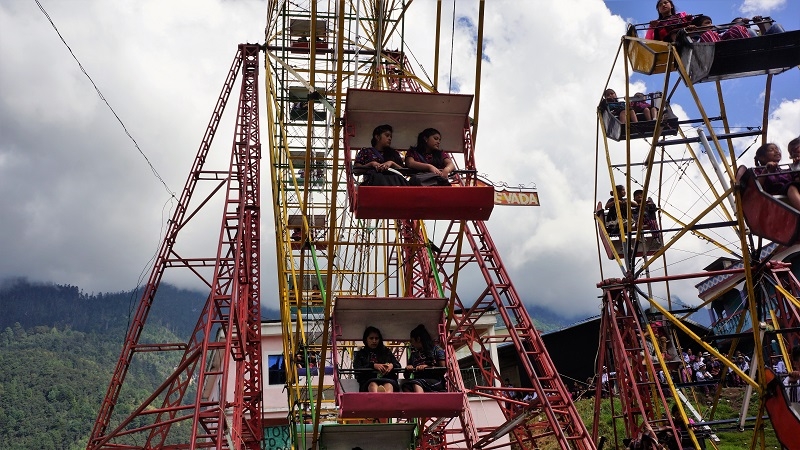 Zwei Riesenräder sind im Dorf aufgestellt. Margrit findet, das müssen wir nutzen. So steigen wir im Dorf zur Schule hoch, wo das eine Rad steht. Wir treffen noch Beatrice an, die ebenfalls mitmachen will. So lösen wir, ohne uns genauer zu informieren, drei Tickets für 25 Quetzales und besteigen die Sessel, Margrit und ich zusammen, Beatrice etwas später einen zweiten. Mit einer Stange vor unseren Bäuchen werden wir gesichert. Es versteht sich, dass ich den Bauch etwas einziehen muss, denn die Einheimischen sind wirklich Leichtgewichte. Und dann beginnt der Spass. In kleinen Schritten steigt der Sessel etwas höher, denn in den folgenden Sesseln werden die Passagiere ebenfalls ausgewechselt. Jedesmal schaukelt der Sessel etwas, und das in immer grösserer Höhe. Einmal sind ja dann alle Sessel neu besetzt. Jetzt geht der Spass erst recht los. Das Rad beschleunigt seine Fahrt, und zwar rückwärts zu unserer Sitzrichtung, und immer schneller. Uns wird es recht ungemütlich, wenn nicht sogar ungeheuer. Zum Glück erfolgen dann endlich die Verlangsamung der Drehung bis zum Stillstand. Wir haben’s geschafft. Da beginnt aber das Rad in engegengesetzter Richtung zu drehen und wird immer schneller. Zum Glück haben wir die Sicherunsstange, und sie hält. Mir wird langsam übel, Margrit erlebt Schrecksekunden. Sie schreit, andere allerdings auch. Und dann kommt der Halt. Endlich! Wir sind froh, als wir endlich dem Mordsgerät entsteigen können, zwar mit etwas zittrigen Beinen, ansonsten aber unversehrt. Nach diesem Schreck ist ein Cuba libre fällig.