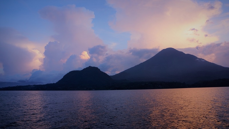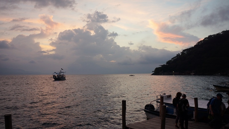 Die Weiterfahrt führt uns zu unserem Hotel in Santa Catarina, sehr nahe am Ufer des Atitlán-See. Hier kann man sich wohlfühlen in grosszügiger und stiller Umgebung. Wir machen zu zweit zu Fuss noch einen kleinen Abstecher zum See, um den Sonnenuntergang zu fotografieren, aber heute Abend findet dieser hinter dichten Wolken statt.