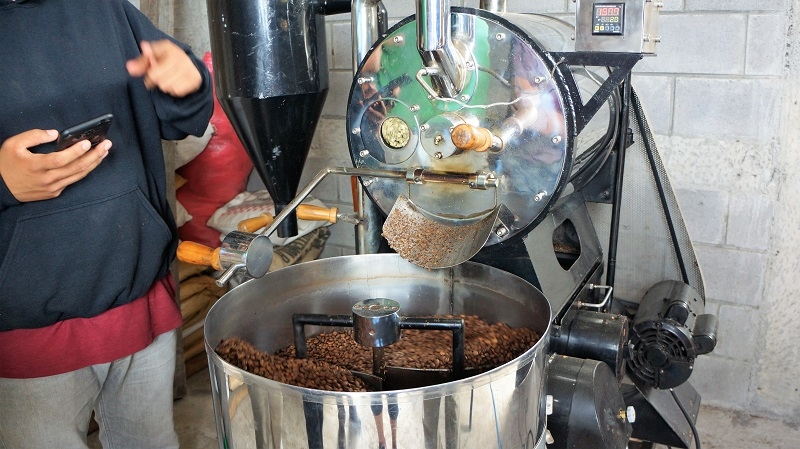 Nach dieser Mittagspause werden wir von einem Pickup abgeholt. Wir alle 17 Personen sollten da hintendrauf auf die Ladebrücke steigen. René will das aber nicht verantworten und ruft noch vier oder fünf Mototaxis. Margrit und mich trifft es auf ein solches. So tuckern wir mit unserem Fahrer durch das Städtchen und ein Stück aufs Land hinaus zu einer Kaffeeplantage, auf der Versuche mit verschiedenen Pflanzen aus Brasilien gemacht und die Kleinbauern aus der Umgebung geschult werden. Hier erfahren wir sehr viel über die Hege und Pflege der Kaffeesträucher, über die Ernte und die weitere Verarbeitung der Kaffeekirschen bzw. -bohnen. Zuletzt werden wir in der Rösterei von einer Barista, einer Kaffeespezialistin, zum Probieren eingeladen. Natürlich besteht die Möglichkeit, frisch geröstete Kaffeebohnen einzukaufen, was viel Anklang findet.