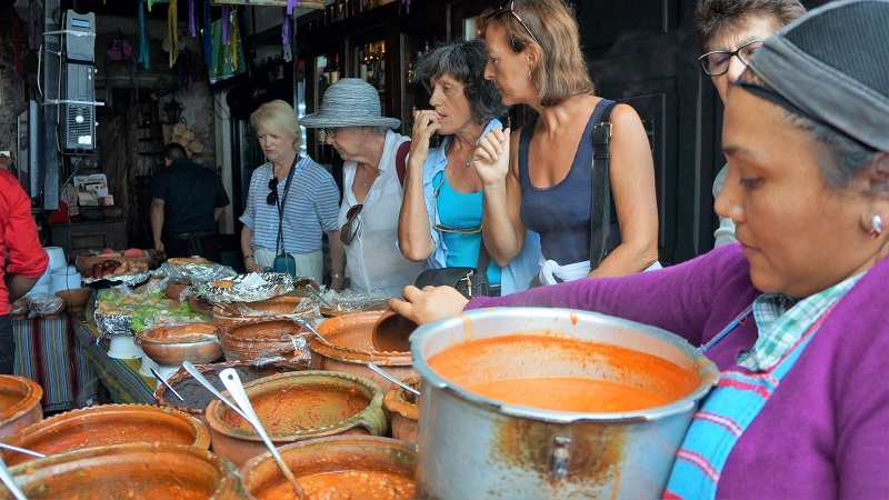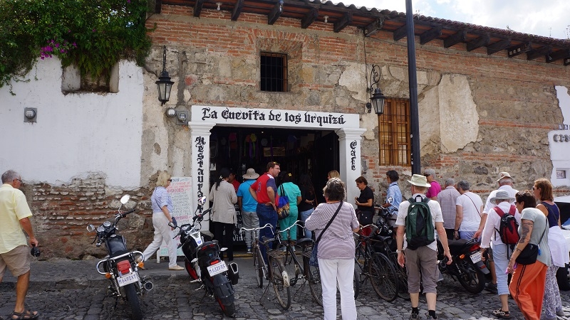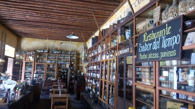 Nun meldet sich allmählich der Hunger. Ein unmittelbar in der Nähe gelegenes Restaurante namens La Cuevita de los Urguizu mit einem speziellen Konzept kommt uns da gelegen. Beim Eingang werden verschiedene Speisen in Töpfen angeboten. Der Gast wählt ein Fleisch und zwei Beilagen aus, begibt sich darauf an einen Tisch und bestellt sich ein Getränk dazu. Dieses und der gefüllte Teller werden ihm an den Tisch gebracht. Nach dem Essen bezahlt der Gast seine Konsumation beim Ausgang.