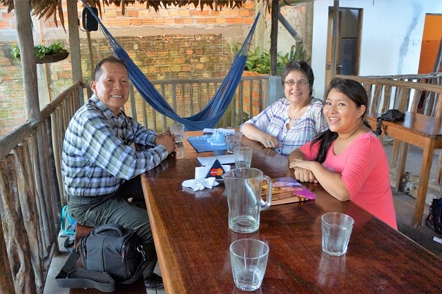 Um halb acht ist Morgenessen angesagt. Bereits zuvor erstellen wir unsere Dschungelpackung. Nach dem Morgenessen bringen wir unser Gepäck, das in der Casa Fitzcarraldo zurückbleibt, ins Büro von Walter Saxer. Unser Guia für den Regenwald, Monó alias Edwin, kommt und holt uns mit einem Fahrer mit Van ab. Er gibt uns das heutige Programm bekannt.