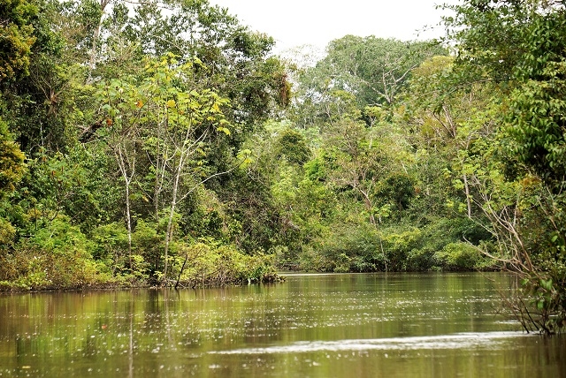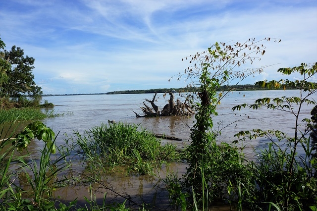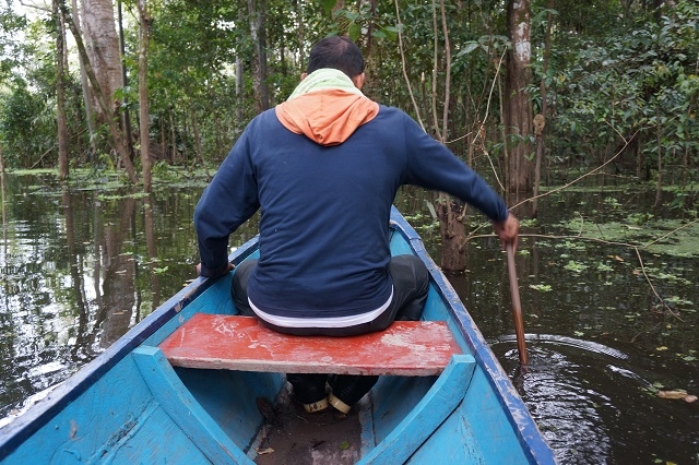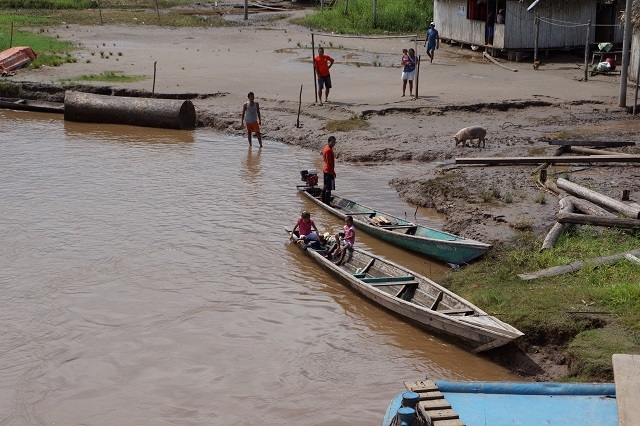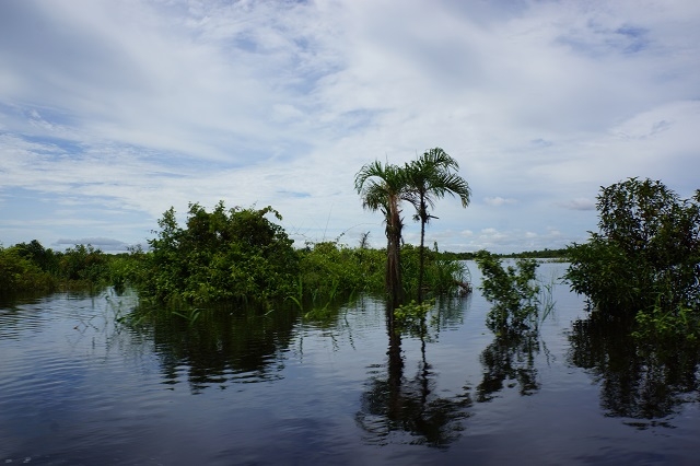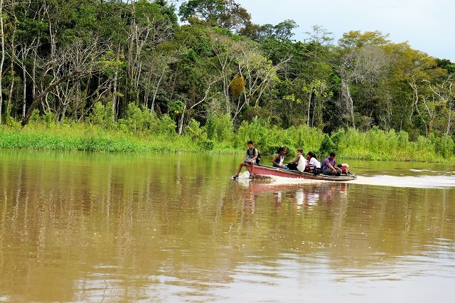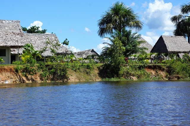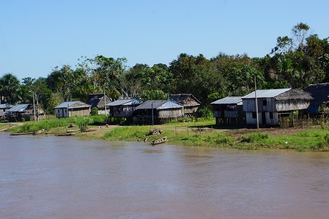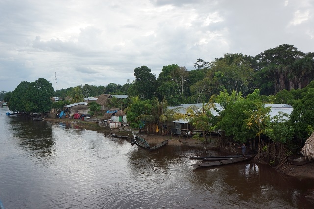 Nun zieht die Landschaft an uns vorbei: sehr viel Wald, riesige Lagunen, Dörfer der Amazonasbewohner und Lodges für Touristen. Verkehr hat es wenig, mal ein Touristenboot und mal ein Boot eines Einheimischen.