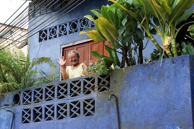 Beatrice trifft auf einen Guia, der ihr eine Bootsfahrt inkl. Besuch seiner Familie offeriert, was wir ohne zu zögern akzeptieren. Aber bevor wir aufs Boot gehen, steht uns noch ein anderes Erlebnis bevor. Da steht eine ältere Frau auf einer blumengeschmückten Terrasse an einem Haus mit wunderbar freier Aussicht auf den Rio Itaya. Beatrice kommt mit ihr ins Gespräch, und sie lädt uns ein, zu ihr auf die Terrasse hinaufzusteigen, was wir umgehend in die Tat umsetzen. Ein paar Aufnahmen von ihrer Terrasse aus und die Bewunderung ihrer Familienfotos im Wohnraum lassen uns erfahren, dass sie 80 Jahre zählt und dass sie in den 50er-Jahren des letzten Jahrhunderts einmal zur Miss Peru gekürt wurde. Zum ersten Mal in meinem Leben lerne ich eine richtige Miss persönlich kennen.