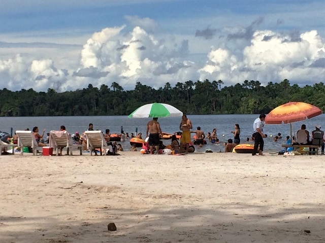 So gegen zwei Uhr fahren wir dann zurück zum Hafen und drängeln uns noch durch die vielen Essstände, wo vor Ort ein sagenhaftes Angebot an auf Holzkohle gegrillten Fischen aus dem Amazonas angeboten wird. Hier sitzen auch viele Einheimische auf Bänken an einfachen Holztischen und geniessen einen frisch zubereiteten Fisch mit einheimischen Zutaten wie Maniok, Kochbananen u.a.