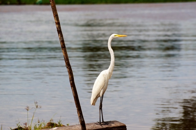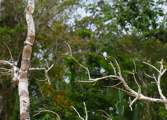 Als es endlich etwas aufhört zu regnen, fahren wir los. Zuerst muss aber wieder der Ucayali erreicht werden. Im etwas grösseren Schiff geht es heute bis zur Einmündung des alten Rio Tarapo und dann diesen hinauf. Schon bald beobachten wir sicher zwei verschiedene Arten Eisvögel (Kingfischer). Allerdings sind sie sehr scheu und verschwinden pfeilschnell in den Büschen.