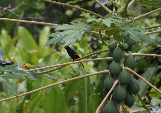 Wir sitzen jetzt, um 17 Uhr, zum letzten Mal in der Hängematten-Hütte und geniessen den Abend in der Lodge. Während des Schreibens lassen sich ausgezeichnet die Vögel, die in der Umgebung leben oder hier vorbeiziehen, beobachten und hören. Im Augenblick ist das „Geglubsch“ des Krähenstirnvogels (Oropendula), der melodische Gesang eines unsichtbaren Singvogels und das Schimpfen eines weiteren im Laub versteckten Vogels zu hören. Am Morgen wurde die Vogelexkursion nochmals verschoben, auf morgen Samstag. Morgenessen war um acht.