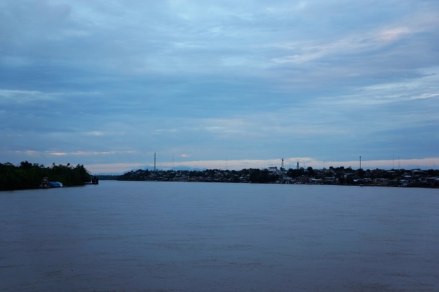 Schon vor fünf Uhr sind wir wieder wach, erledigen unsere Morgentoilette und erscheinen bald an Deck. Unser Schiff fährt mit reduzierter Geschwindigkeit. Wir überholen in der Dunkelheit ein anderes gleichartiges Schiff mit einer grossen Ladefläche und mit einem Aufbau hinten, wo ebenfalls Hängematte an Hängematte aufgehängt sind. Eine grosse Siedlung können wir nirgends erkennen. Am rechten Ufer aber ändert sich die Landschaft, das Gelände ist hügelig und zum Teil gerodet. Wiesen und Felder sind erkennbar und die Hütten sind höher gelegen, so dass sie nicht mehr dem Hochwasser ausgesetzt sind.