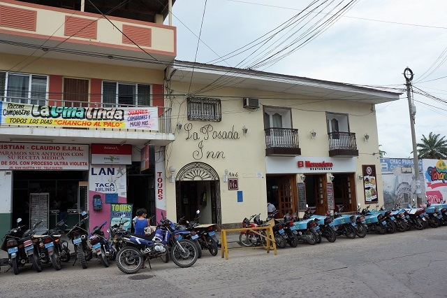 Wie bereits andernorts verläuft die Fahrt rasant und in unseren Augen öfters auch riskant. Zu unserem Glück landen wir nach rund zwei Stunden wohlbehalten in Tarapoto, wo wir uns in einem einfachen Restaurant ein Frühstück genehmigen. Mit dem Mototaxi fahren wir zu unserem aus dem Reiseführer ausgewählten Hotel La Posada Inn. Da können wir unser Zimmer unmittelbar beziehen und unter eine wohltuende Dusche stehen.