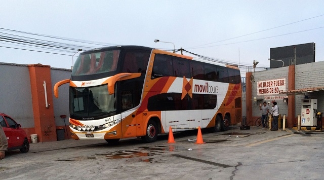 Um drei fährt der Bus. Wir geben das Gepäck auf und warten auf die Öffnung des Gates. Endlich dürfen wir den Bus nach einer Kontrolle mit einem Metalldetektor und der Aufnahme eines Fotos von uns besteigen. Wir sitzen ziemlich weit hinten. Die Beinfreiheit ist gross, die Rückenlehne lässt sich recht weit hinunterklappen und am Vordersitz ist eine ausklappbare Ablagefläche für die Beine angebracht. Bequemlichkeit wird also grossgeschrieben. Und so starten wir denn zu unserem Busfahrtabenteuer durch die Anden.