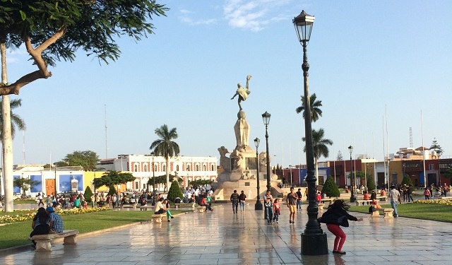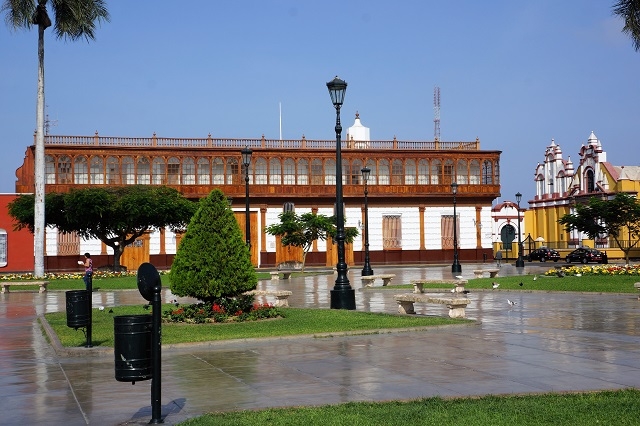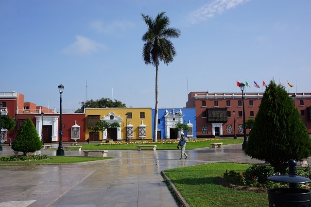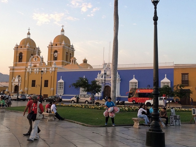 Als erstes gehen wir zu Fuss zur Plaza de Armas und machen anschliessend einen aus dem Reiseführer ausgewählten Rundgang mit den wichtigsten Sehenswürdigkeiten in der Stadt. Trujillo präsentiert sich als sehr gepflegte und saubere Stadt. Viele Häuser aus der Kolonialzeit sind restauriert und leuchten in allen Farben.