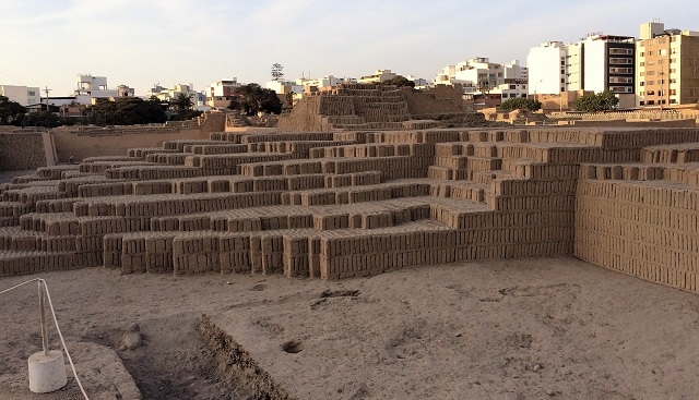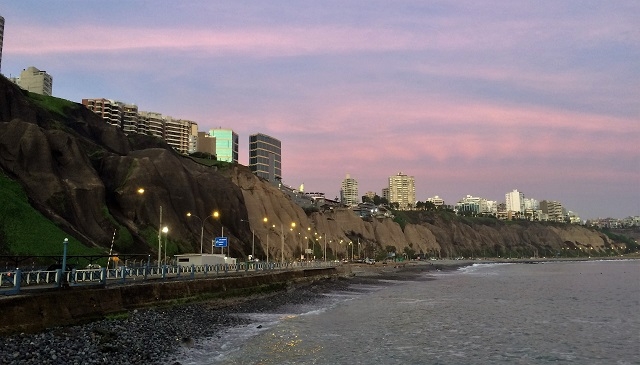 Wir fahren per Taxi zur Huaca Pucllana, einer Ausgrabungsstätte im Stadtteil Miraflores. Da wir knapp nach 17 Uhr ankommen, können wir die ganze Anlage nicht mehr besichtigen. Aber auch so ist der Anblick dieses Bauwerks eindrücklich. Adobe-Bausteine sind fein säuberlich an- und aufeinander angeordnet wie die Bücher in den Regalen einer riesig grossen Bibliothek. Im Gelände der archäologischen Stätte befindet sich ein Restaurant. Eigentlich wäre geplant, hier ein frühes Nachtessen einzunehmen und dann in einem nahen Park einer Vorführung von Licht- und Wasserspielen beizuwohnen. Aber da macht uns das Schicksal gerade zweimal einen Strich durch unsere Rechnung. Essen im gewählten Restaurant wird erst ab sieben serviert, und die Vorführung findet montags nicht statt. Bei einem Pisco Spezial – Schliesslich kennt Beatrice den Barman von früheren Besuchen – beschliessen wir, per Taxi zur Rosa Nautica, einem Restaurant auf einem Pier an der Meeresküste, zu fahren und dort unser letztes Dinner in Peru zu geniessen. Zuerst bewundern wir draussen die Farbenspiele am Himmel über dem Stillen Ozean, die kreischenden und wunderhübsch aussehenden Inka-Seeschwalben und halten die Stimmung fotografisch fest. Darauf geniessen wir die Speisen im Innern. Das Essen schmeckt vorzüglich, die Atmosphäre stimmt. Schon bald lassen wir uns zum Hotel zurückfahren, denn schliesslich bot die letzte Nacht im Bus nicht gerade die optimale Erholung.