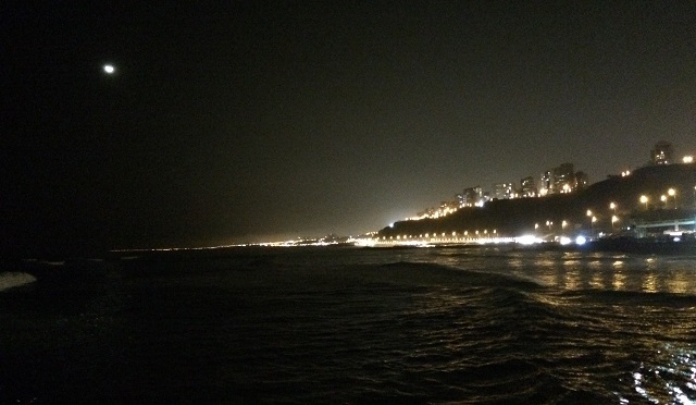Irgendwann nach fünf Uhr erwache ich in meinem Sessel. Dass er eine unbequeme Liege ist fürs Schlafen, spüre ich in Form von Schmerzen und Verkrampfungen an verschiedenen Stellen meines Körpers. Der Nacken macht sich schmerzhaft bemerkbar, die rechte Wade ist irgendwie verkrampft, die Schultern, insbesondere die rechte, tun weh und das Kreuz fühlt sich ganz steif an. Mit etwas Bewegen und Strecken kann ich mir Linderung verschaffen. Ich schiebe die Vorhänge, soweit es geht, auf die Seite und schaue, wo wir sein könnten. Draussen herrscht noch stockdunkle Nacht. Lichter sieht man wenige ausser der roten und orangen Rück- und Bremslichter der vor uns fahrenden Reisecars und der weissen und gelben Scheinwerfer der entgegenkommenden Autos. Die Lichter von Lima sind nirgends zu sehen.