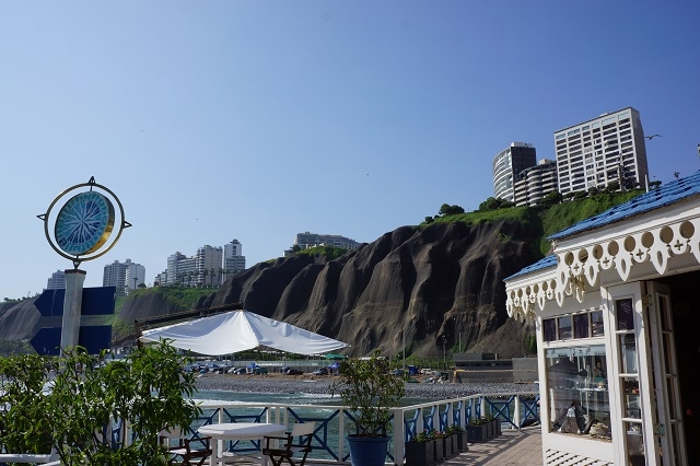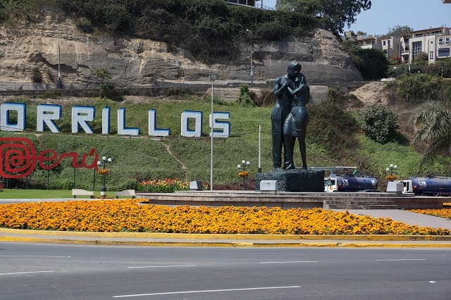 Irgendwann meldet sich Beatrice zu Wort und gibt uns bekannt, dass sie für uns drei im Lokal drin einen Tisch am Fenster mit Sicht auf ein nahes Geländer und auf das Meer reserviert habe. Und da geniessen wir noch unser letztes Essen in Peru, leckere Spezialitäten aus dem umgebenden Stillen Ozean: Ceviche, Fischspiesschen vom Tagesfang, Teigtaschen mit Fischfüllung und Jakobsmuscheln – einfach herrlich. Immer wieder abgelenkt werden wir von den Vögeln draussen auf dem Gebäudedach und insbesondere von einer auf dem Geländer vor dem Fenster lauthals bettelnden Möwe. Nach dieser in jeder Beziehung einmaligen Mahlzeit machen wir uns auf den Weg zum Parque Kennedy, Beatrice per Taxi, Margrit und ich zu Fuss.
