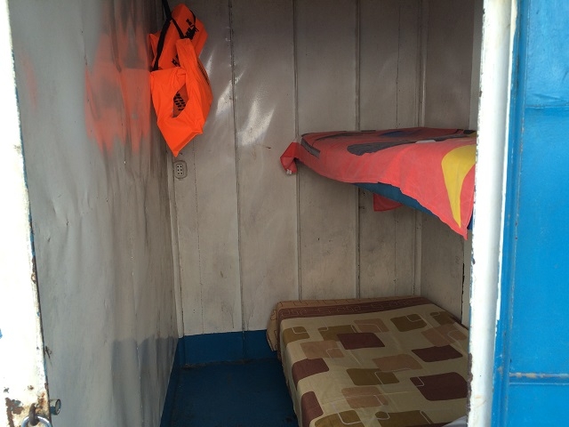 Um ca. neun Uhr räumen wir unsere Hängematten ab und verziehen uns in unsere Kabine. Die Nacht verbringen wir auf den harten Pritschen.