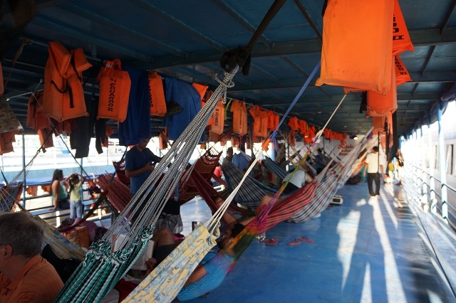 Die Nacht verbringen wir bis ca. zwei Uhr in der Hängematte, dann verziehen wir uns in die Kabine und machen es uns auf den harten Pritschen „bequem“.