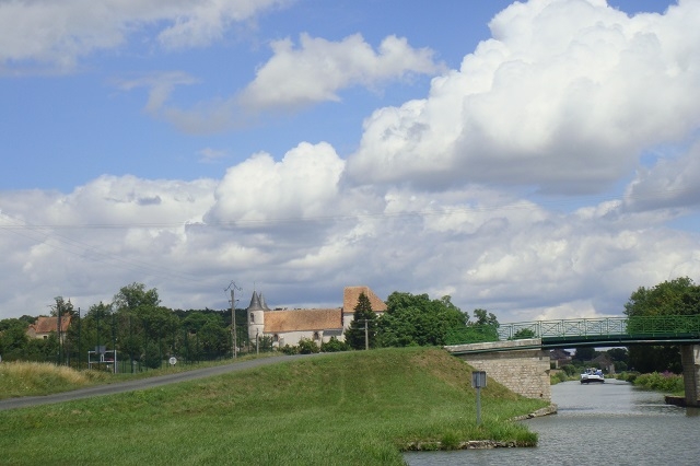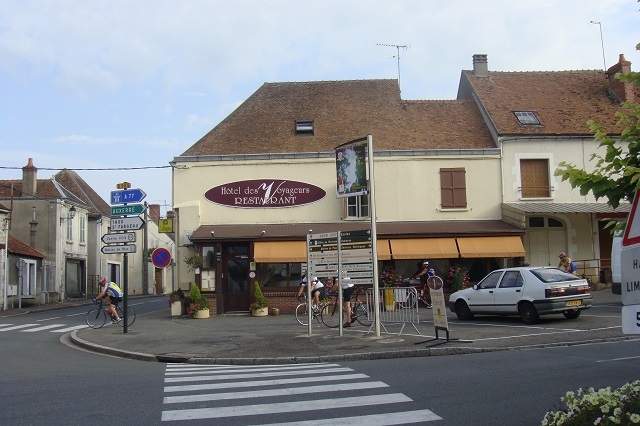 Bei Charité-sur-Loire treffen wir ein Ehepaar aus Avignon. Da können wir Französisch üben. Bei der Schleuse in Bannay unterhält sich Peter mit dem Schleusenwart und lässt sich alles genau erklären. Die Schleuse ist ganz von Hand betrieben. Wir fahren nun einen Kanal entlang, der „beschifft“ ist. Auf einem Rastplatz essen wir unsere Früchteresten. Es ist heiss und das Trinkwasser wird etwas knapp. Wir fahren weiter in der Hoffnung, ein Bistro oder etwas dergleichen im nächsten Dorf zu finden. Die Dörfer sind aber wie ausgestorben. Beim Atomkraftwerk geht Peter in ein Naturschutzcenter. Hier können wir unsere Flaschen mit kaltem Wasser füllen. Nachher geht es noch 15 Kilometer weiter. Wir finden unterwegs noch eine Bar und trinken einen Kaffee und eisgekühltes Wasser. Vor Bonny-sur-Loire überqueren wir die Loire und fahren ins Städtli. Wir finden im Hotel des Voyageurs ein Zimmer für 40 Euro.