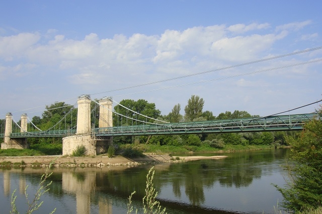 Nach dem Frühstück und dem Packen geht’s aufs Velo. Der Himmel ist blau mit weissen und grauen Schleierwolken. Zuerst fahren wir in Richtung Flugplatz und daran vorbei. Schon bald geht es über die Loire. Einige Male müssen wir uns auf der Karte orientieren. Aber wir finden den Einstieg in den Veloweg sehr gut. Der ist hier ganz neu erstellt. Es hat nur wenige Streckenteile mit Schlaglöchern. Wir kommen sehr gut voran. Meistens ist uns Petrus gut gesinnt, und der Wind kommt von hinten oder wenigstens seitlich. Unser Highlight des Tages ist ein Goldfasanmännchen, das fliegend unsern Weg kreuzt. Wir sehen auch Eichhörnchen und hören verschiedene Vögel, die wir zum Teil bestimmen können.