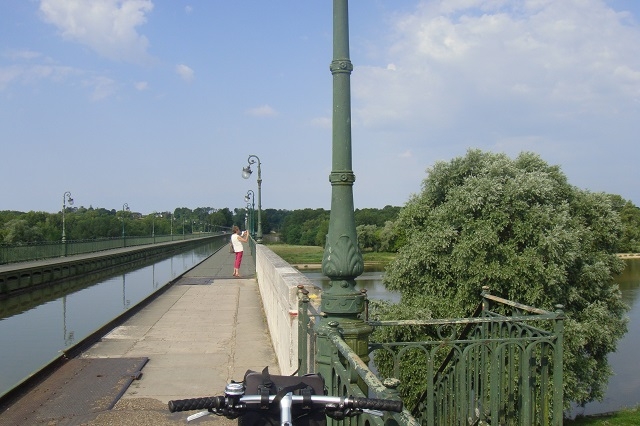 Wir haben beide gut geschlafen. Nach einem feinen Zmorge und Plaudern mit einer belgischen Männerradgruppe, die mit einem Begleitbus nach Lourdes unterwegs ist, machen auch wir uns bereit und fahren los. Wir fahren auf sehr schönen, romantischen Radwegen der Loire entlang. In Briare fahren wir über eine Kanalbrücke. Leider fährt gerade kein Boot darüber. Die Brücke wurde 1890 -1894 gebaut.