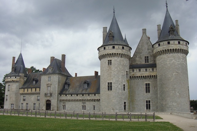 Wir überqueren mit dem Kanal die Loire. Am andern Ufer finden wir den Radweg nicht. Also fahren wir den Kanal entlang, über den Kanal und dann auf den Höhenzug. Oben angekommen finden wir auch keinen Radwegwegweiser. Also einfach nordwärts. Wir kommen wieder ins Tal und sehr bald nach Gien. Hier können wir zuschauen, wie das Feuerwerk für den Abend (14. Juli, Französischer Nationalfeiertag) vorbereitet wird. Wir fahren weiter auf einer Landstrasse, die unterschiedlich Verkehr hat und immer rauf und runter geht. Aber der Wind ist uns hold. Er kommt meistens von hinten. So können wir zwischen 20 und 24 km/h fahren. In St-Gondon lesen wir, dass die Festivität zum 14. Juli nicht im Freien stattfindet, sondern in den Gemeindesaal verlegt wird. Der Grund sind schwere Unwetter, die angesagt sind. Kurz nach 12 Uhr fahren wir in Sully-sur-Loire ein. Im Angesicht des Schlosses nehmen wir unser Mittagessen ein. Nachher schauen wir das Schloss noch näher an. Bereits jetzt beginnt es zu stürmen, und der Himmel wird immer dunkler. Wir treffen auf eine österreichische Radfahrergruppe, die mit einem Car mit Veloanhänger unterwegs ist.