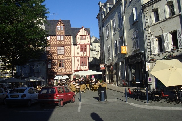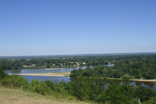Heute Morgen ist der Himmel ganz blau. Auf dem Platz vor unserem Zimmer wird ein Markt aufgebaut. Wie ich‘s aber sehe, werden nur Kleider verkauft. Wir packen unsere Velos und gehen auf den Markt einen Früchtestand suchen, den wir dann auch finden. Also können wir unser Mittagessen bei den Bauern günstig einkaufen. Wir fahren los. Unser erstes Ziel ist das Dornröschenschloss in Ussé. Wir erreichen es nach 16 km Fahrt. Für 13 Euros pro Person dürfen wir zur Besichtigung. Zuerst gehen wir in die Kapelle, dann in den Keller. Hier ist beschrieben, wie der Wein hergestellt wurde. Der Keller ist in der Felswand hinter dem Schloss. Die Steine, die ausgebrochen wurden, verwendete man für den Bau des Schlosses. Darauf besichtigen wir den Turm. Hier ist das Märchen Dornröschen mit lebensgrossen Figuren hinter Glasscheiben dargestellt. Nachher können wir auch noch durch den Estrich laufen, hier hat es allerlei Gerümpel aus alter Zeit. Zudem können wir verschieden Zimmer des Schlosses besichtigen. Wieder draussen, stellen wir fest, dass es heute sicher ziemlich heiss werden wird. Zum Glück führt unser Weg durch den Wald weiter. Es ist ein richtiger Märchenwald, der zum Schloss passt. Unser Mittagessen nehmen wir auf dem Kirchenplatz von Savigny zu uns. Die Melone, die Aprikosen und die Kirschen schmecken ausgezeichnet. Wir fahren weiter zwischen Sonnenblumenfeldern durch und sehen eines der Atomkraftwerke Frankreichs. Unser nächstes Ziel ist die Kirche von Candes-St-Martin. Hier besuchen wir die Kirche des heiligen Martin. Nachher steigen wir zu Fuss auf den angepriesenen Aussichtspunkt hinauf. Da sind wir etwa 80 Meter über der Loire. Wir geniessen eine wunderbare Aussicht. Nach dem Hinuntersteigen geht’s weiter. Kurz nach einem Aufstieg im nächsten Dorf, in Montsoreau, machen wir einen Halt. Es ist sehr heiss und wir haben kaltes Wasser nötig und Peter natürlich ein Eis. Wir geniessen in diesem Restaurant einen schönen Blick auf die Loire und das Château. Nachher geht es wieder hinunter und weiter der Loire entlang. Bei Turqant schieben wir unsere vollgepackten Velos eine 18%-Steigung wieder auf die 80 Meter hoch. Am Weg hat es Häuser, die ganz in den Felsen gebaut sind. Oben angekommen, stehen wir auf einer neuen Aussichtsplattform neben einer Kapelle, die renoviert wird. Kurz nachher haben wir die Wahl, weiter hoch in die Rebberge zu steigen, oder wieder runter an die Loire. Wir beschliessen, in den Rebbergen zu bleiben und nochmals etwas hoch zu trampen oder zu schieben. Es geht immer wieder runter in eine Stoppstrasse und dann sofort wieder steil hoch. Das ist natürlich mühsam. Die Sonne brennt unbarmherzig vom Himmel, und Schatten ist weit und breit nicht in Sicht. Unsere Erlösung ist das Stadtschild von Saumur. Wir kommen am Spital vorbei. Da steigt es ein letztes Mal, dann geht es nur noch runter. Beim Schloss machen wir einen kurzen Halt. Nachher geht’s weiter rasant in die Stadt hinunter. Beim ersten Zwei-Sterne-Hotel, das uns begegnet, bekommen wir ein Zimmer für 48 Euro und das Frühstück für 7 Euro. Nach dem Duschen geht’s ins Zentrum zu einem Apéro. Wir suchen uns ein Restaurant für das Nachtessen aus. Saumur ist eine recht grosse Stadt mit vielen Touristen. Für Peter gibt es heute einen Salat mit Ziegenkäse in Paniermehl gebacken. Ich bekomme einen Salatteller mit Tomaten, grünem Salat, Peperoni, Weinbeeren und Trübeli, auch sehr gut. Dazu trinken wir Roséwein und Wasser, nachher einen Kaffee. Zum Abschluss des Tages geht’s noch auf die Place St. Pierre zu einem weiteren Glas Rosé.