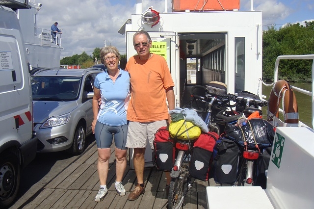 Wir erwachen und müssen feststellen, dass es draussen sehr grau ist. Wir gehen zum Frühstück. Zurück auf dem Zimmer stellen wir fest, dass es wie aus Kübeln regnet. Wir beschliessen, noch etwas zu warten, uns auf das Bett zu legen und fern zu schauen. Um 09.30 Uhr beschliessen wir, trotz Regen zu fahren. Wir packen unsere Velos in der Garage. Es regnet nicht mehr so stark, und im Westen hellt es auf. Zuerst fahren wir zur Kathedrale, da beginnt es wieder stärker zu regnen. Also ziehen wir unsere Regenschütze an. Wir besichtigen die Kathedrale und bekommen vom Sigrist die Erklärung, dass das hier die sauberste Kathedrale Frankreichs sei, weil sie 1972 abbrannte und dann wieder aufgebaut und renoviert wurde. Wieder draussen, regnet es bereits nicht mehr so stark. Wir fahren zum Schloss und besichtigen es, aber nur von aussen. In der Zwischenzeit hat es aufgehört zu regnen, und wir können unsere Regenschütze wieder einpacken. Nun suchen wir den Weg aus der Stadt, um auf den Veloweg zu gelangen. Wir finden ihn sehr schnell und fahren etwa 12 Kilometer durch Industriegebiet. In Port Launay nehmen wir die Fähre (gratis) nach Le Pellerin. Wir lernen zwei Bernerinnen kennen, die das gleiche Ziel haben wie wir. Sie sind ebenfalls mit dem Velo unterwegs. In St. Pellerin gehen wir zuerst einen Kaffee trinken. Von hier aus telefoniert Peter mit einem chambre d‘hôtes. Scheinbar gibt es vor la Baule nur noch eine Möglichkeit zu übernachten. Weil es bis La Baule noch fast 100 Kilometer sind, wollen wir nicht die ganze Strecke machen. Das Zimmer ist reserviert, also können wir in aller Ruhe losfahren. Nach einiger Zeit kommen wir an einen Kanal, dem wir entlang fahren. Am Ufer hat es viele Fischer. Auf einer Bank nehmen wir unser Mittagessen zu uns und schauen dem Fischer auf der andern Seite zu. Unterwegs hat es auch zwei Schleusen, die aber nicht mehr in Betrieb sind. Wir fahren mehr oder weniger immer dem Kanal entlang bis nach Paimboeuf. Hier versuchen wir in einem Handwerkermarkt einen Pneu für mein Velo zu kaufen. Aber erfolglos. Auf der andern Seite der Strasse hat es einen Super U. Aber auch hier sind wir bezüglich Velopneu erfolglos. Wir kaufen aber Studentenfutter, Nüsse, Brot und Strassburger Salat für Peter, er hat Hunger.