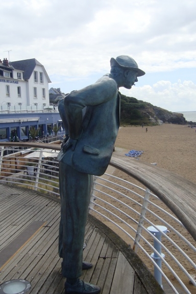 Wir erwachen erst um 8 Uhr! Entsetzt stellen wir fest, dass es in der Nacht geregnet hat und es immer noch leicht regnet. Das Wetter bessert sich aber, und nach dem Frühstück hört es auf. Wir gehen ins Zentrum, auf den Flohmarkt. Spannend, was da alles verkauft wird: Möbel, die bei uns kein Brockenhaus nehmen würde, defekte Puppen, viel Silberbesteck, das nicht sehr billig ist, gewisses Porzellan, das bis 100 Euro kostet. Wir gehen zurück und kaufen auf dem Rückweg als Mittagessen, eine Melone und Birnen. Auf unserem Zimmer ziehen wir uns fürs Velofahren um. Wir fahren zum Hafen von Pornichet. Dort essen wir unsere Früchte und lassen die Flut auf uns wirken. Nachher geht’s weiter bis an das Stadtende von Pornichet. Jetzt beginnt gleich die Stadt St. Nazaire. Bei einem Park stellen wir unsere Velos ab. Wir gehen zu Fuss weiter. Wir wollen eine Côte-Wanderung machen. Nach kurzer Zeit landen wir auf der Plage Sainte-Marguerite. Wir „durchsanden“ sie und steigen wieder hoch. Es geht nun auf und ab, zum Teil müssen wir auf der Autostrasse wandern. Beim nächsten Strand nimmt Peter ein Bad. Das Meer ist sehr wild, die Flut kommt. Peter wird von einer Welle auf einen Felsen gedrückt und holt sich dabei einen rechten „Kräbel“ am Rücken. Das Wetter wird immer besser, sogar heiss, darum kann er sich an der Sonne trocknen lassen. Nachher geht‘s hoch zu einer Radarstation und vorbei an einem FKK-Strand: die armen weissen „Füdli“ und Busen!! Wir wandern bis zu dem Punkt, von dem wir auf die Plage de Monsieur Hulot sehen können. Da kehren wir um. An der Plage de Sainte-Marguerite gehen wir einen Apéro trinken. Mit den Velos fahren wir zum Hotel nach La Baule zurück.