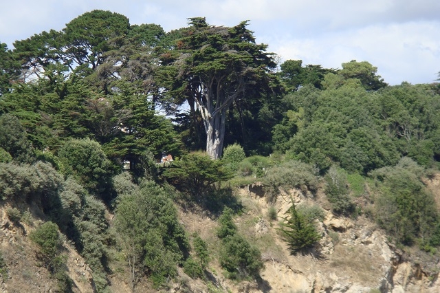 Wir schlafen ausgezeichnet, obwohl das Bett sehr weich ist. In der Nacht hören wir zweimal, wie es regnet. Als wir um sechs Uhr aufwachen, merken wir aber, dass der Himmel schon blaue Flecken hat. Der Verkehr auf der Strasse Richtung Pont de St-Nazaire ist bereits sehr stark. Um acht Uhr gehen wir zum Frühstück. Neben dem Normalen gibt es selbstgemachte Konfi, z.B. Melone mit Pfefferminze und Aprikose mit Rosmarin und eine aufgeschnittene grosse Brioche. Anschliessend gehen wir aufs Zimmer und bepacken anschliessend die Velos, bezahlen die Rechnung und ab geht’s. Wir sind gespannt auf den Pont. Der Radweg führt uns kreuz und quer durch Kuh- und Rinderweiden. Auf einmal sehen wir die Brücke. Wir sind bereits sehr nah. Seitlich fahren wir an die Brücke heran und müssen feststellen, wie schmal der Velostreifen ist. Also, allen Mut zusammennehmen und starten. Ich will zuerst schieben. Peter rät mir aber zu fahren. Ich nehme allen Mut zusammen und steige aufs Velo. Ich merke, dass es wirklich besser ist zu fahren. Das „Hinaufsteissen“ geht eigentlich sehr gut, wenn die Autos und die Lastwagen nicht zu nah heran fahren. Wenn sie zu nah kommen, wirkt sich das wie ein Sog aus. Ich schaffe es fast bis nach oben. Dann schiebe ich noch den Rest. Das Herunterfahren erweist sich als weit gefährlicher. Es hat nur noch eine Spur. Darum kommen die Lastwagen und die Wohnwagen sehr nahe, und sie ziehen mich an. Wenn ich einen Lastwagen höre, steige ich ab und warte, bis er vorbei ist. Das Ziel vor Augen trete ich ganz kräftig in die Pedalen. Der Lastwagen hinter mir merkt das und überholt mich nicht. Uff, geschafft!! So komme ich zwar mit Herzklopfen, aber wohlbehalten unten an, wo Peter auf mich wartet. Diese Brücke würde ich nie mehr machen. Gegen Anmeldung könnte man übrigens das Velo auf den Bus verladen und mit dem Bus über die Brücke fahren. Wir erholen uns etwas und fahren dann weiter. Richtig markiert ist der Weg nun nicht mehr. Wir finden aber einen Weg durch das Hafengelände und die Gartenanlagen von St-Nazaire. In St-Marc treffen wir auf einen Markt. Günstig decken wir uns mit einem Kilo Aprikosen für einen Euro und zwei Melonen für 1.50 Euro ein. Zudem kaufen wir noch Nature Joghurt. Am Strand von Monsieur Hulot essen wir unser Zmittag. Wir sind am Atlantik! Nachher fahren wir weiter, immer unserem Gefühl nach. So kommen wir nach Pornichet. Da erkennen wir den Strand von La Baule aus unseren Erinnerungen wieder. Bei der richtigen Strasse zweigen wir ab und finden das vorreservierte Hotel du Bois sofort. Wir werden erwartet und sehr herzlich von Madame begrüsst. Zuerst erhalten wir einige Infos. Nachher werden wir aufs Zimmer geführt. Es ist recht gross und geräumig und gefällt uns sehr gut. Endlich können wir mal unsere Kleider auspacken, da wir ja sechs Nächte hier bleiben. Wir ziehen uns um und gehen an den Strand. Die Sonne scheint. Eigentlich wäre es sehr warm, wenn nicht ein so starker Wind wehen würde. Es hat nicht sehr viele Menschen am Strand. Die Wellen sind recht hoch. Peter, der vom Meer zurückkommt, sagt, das Wasser sei kalt. Neu gibt es nun tolle Duschen. Wir legen uns in den Sand und geniessen das Meeresgeräusch, die Wärme und den Meeresduft. Später schlendern wir durch La Baule zurück ins Hotel, natürlich mit einem Apéro unterwegs.
