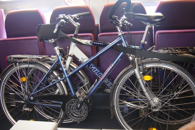 Wir haben beide gut geschlafen, nur die Hüftknochen tun etwas weh. Ich muss mich wohl noch etwas an das Bett gewöhnen. Nach einem feinen „normalen“ Frühstück machen wir uns bereit. Wir gehen am Morgen durch verschiedene Bradreries (Marktstände mit stark heruntergesetzten Markenartikeln), vor allem mit Kleidern. Ausser einem Pilzmesser kaufen wir aber nichts. Wir begeben uns zum Bahnhof. Da kaufen wir ohne grosse Mühe eine Fahrkarte für uns und die Velos für den TGV um 10.05 Uhr nach Paris. Wir haben in Paris sogar mehr Zeit zum Umsteigen, als wenn wir den Zug um 06.00 Uhr nehmen würden.