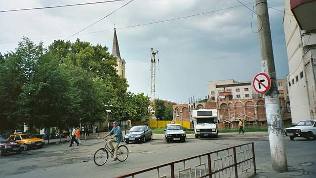 schön, nachmittags gewittrig, Rückenwind besonders hart, 40 km entlang einer stark befahrenen, engen Hauptstrasse (E70) mit Lastwagen Caransebes ist eine typische rumänische Kleinstadt mit vielen Ruinen, katastrophalen Strassen, Durchgangs-Schwerverkehr, einer Fussgängerzone mit Plattenböden, wo die Platten nicht mehr vollzählig sind, einem neu begonnenen Kirchenbau und einem Park. Aber auch ein Internetcafé ist vorhanden.