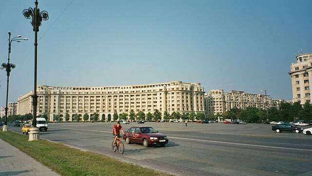 26.08.2002 Mamaia (RO) Bukarest (RO)     Wir haben die Velos verschenkt und fahren per Bahn von Constanta nach Bukarest. Die Beschenkten, ein Pärchen, das im Hotel arbeitet, bringt uns zum Bahnhof in Constanta. Auf der Fahrt sehen wir überdimensionierte Gleisanlagen, die nicht (mehr?) genutzt werden. Da stehen Güterwagen und Lokomotiven herum, die nicht mehr in Gebrauch sind. Man hört die Anlagen fast rosten.