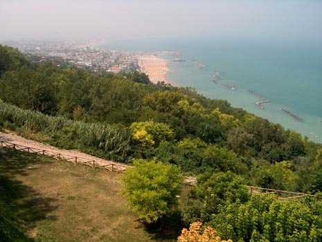 27.07. Immer noch gleich Heute stand uns eine Etappe durch den hügeligen Naturpark von Monte San Bartolo bevor. Wir genossen einen prächtigen Ausblick auf die Küste. Aber es war hart. Senigallia Misano Adriatico ca. 60