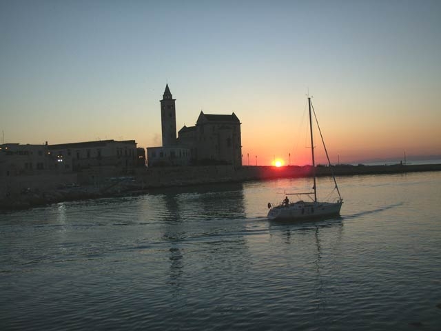 21.07. wie gewohnt schön, heiss und schweisstreibend Ein Schiff rund um den Gargano, wie es auf der Karte eingezeichnet ist und wie wir es uns wünschten, gibt es nicht. Die Enttäuschung spez. bei Margrit ist gross. Trani Manfre­donia ca. 80