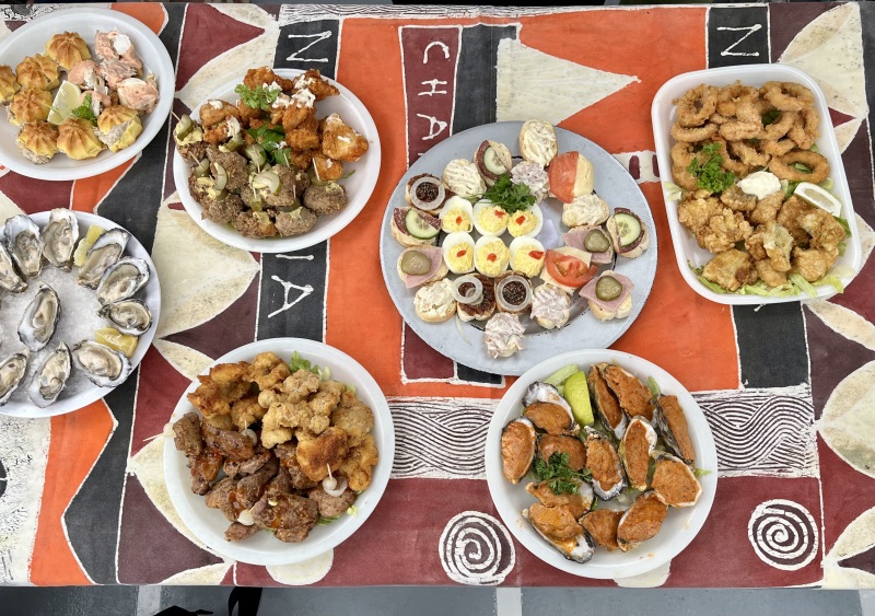 Danach führt die Fahrt ein Stück weit aufs offene Mehr hinaus, wo wir noch wenige Delfine zu Gesicht bekommen. Wale zeigen sich leider keine. Auf der Rückfahrt wird uns ein leckeres Buffet mit verschiedenen Produkten Namibias und seiner Nachbarn angeboten. Wir schlagen alle herzhaft zu und geniessen das reichhaltige Angebot.