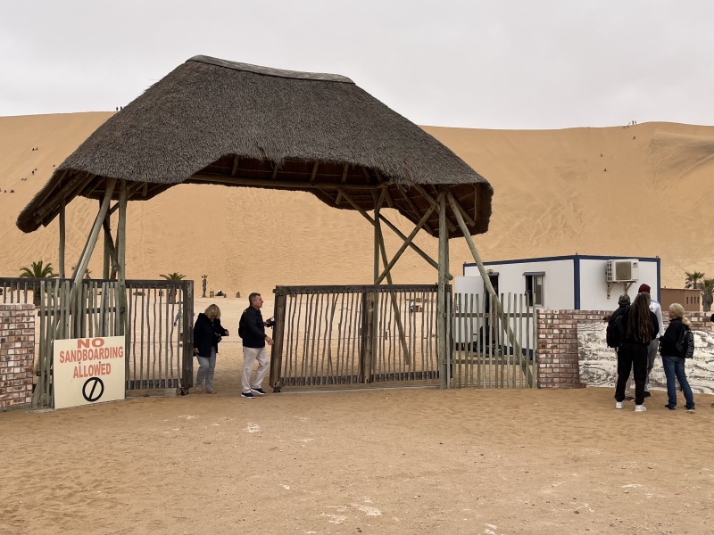 Nach dem Frühstück in einem hübschen, kleinen Café und dem Beladen unseres Autos starten wir in Richtung Swakopmund. Unterwegs schalten wir bei der Düne 7 einen kurzen Zwischenhalt ein. Hier befindet sich ein Vergnügungspark für Kinder, Jugendliche und Junggebliebene. Hohe Sanddünen laden die Besucher zu mühsamem Besteigen und lustvoiien Herunterrutschen ein. Wer mehr Fun wünscht, kann ein Sandboard benützen. Die fröhlichen Kinder, denen ich begegne, haben jedenfalls den Plausch.