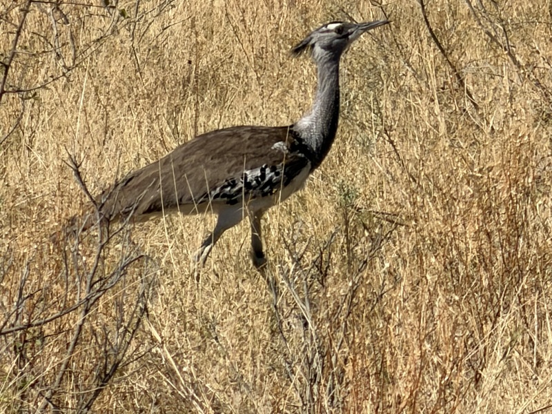 Unsere Taktik ist, Wasserlöcher anzufahren, weil wir dort am meisten Tiere erwarten. Schon unterwegs zu einer ersten Trinkstelle treffen wir auf verschiedene Vögel und Säugetiere.