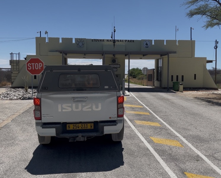 Zügig gelangen wir bei sehr geringem Strassenverkehr an Andersons Gate. Hier wird genauestes protokolliert, wer in den Park hinein geht und wer ihn verlässt. Zudem werden wir aufgefordert, Plastiksätze abzugeben, um zu verhindern, dass diese plötzlich  irgendwo im Park herumliegen. Nach dem Begleichen des Eintrittspreises ihm nächsten Parkbüro können wir das Naturreservat bis Namutoni durchfahren, wo für uns die Unterkunft reserviert ist.
