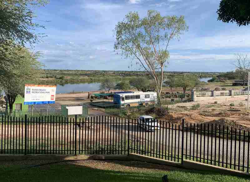 Unsere Weiterfahrt erfolgt entlang des Kavango Richtug Westen in den Caprivistreifen. Wir fahren zuerst ein Stück weit auf der Hauptstrasse B8, dann zweigen wir rechts ab und benutzen die unbefestigte Strasse entlang des Flusses. SchülerInnen sind scharenweise zu Fuss unterwegs. Hier befinden sich viele kleine, noch mehrheitlich traditionelle Dörfer der Urbevölkerung. Die Leute wohnen in einfachen Behausungen, zum Teil in Rund- und in Blechhütten. Kleine Kirchen, oft gemauert, und Schulgebäude sowie Minimarkets und kleine Bars liegen an der Strasse. Wir zweigen bei einem Stichsträsschen Richtung Fluss ab und gelangen auf ein neu angelegtes Camping-Areal. Zwei Männer, eine Frau und Kinder empfangen uns. Auf die Frage, ob wir hier einen kühlen Drink geniessen können, bittet mich einer der Männer in das noch kaum benutzte Empfangsgebäude, öffnet eine Kühltruhe und zeigt mir das Angebot. Sechs 2 l-Coke-Flaschen, eine Kiste Bier und ein paar Schachteln sind darin. Ich entscheide mich für Coca Cola. Draussen trinken wir stehend, uns abwechselnd aus der Flasche. Gläser bringt ein Knabe einige Zeit später. Für die Flasche verlangt der Chef 30 namibische $, umgerechnet knapp SFR 1.50. Ich gebe ihm etwas mehr und wünsche ihm, dass er mit seinem Camping am Fluss Erfolg hat.