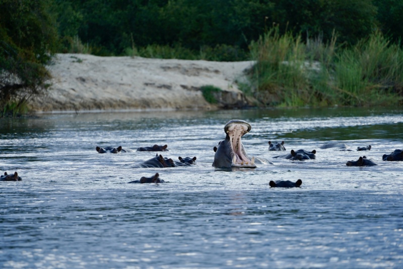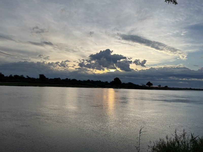 Wir werden mit einem feuchten Waschplätz und einem Willkommensdrink sehr freundlich empfangen und über das Angebot der Lodge informiert. Darauf bekommen wir unser Zelt für zwei Nächte zugewiesen und können uns einrichten. Als wir uns etwas akklimatisiert haben, einigen wir uns darauf, dass wir die Abendfahrt auf dem Fluss und morgen die Nachmittagstour auf der Gegenseite im Mbabwata-Nationalpark mitmachen.